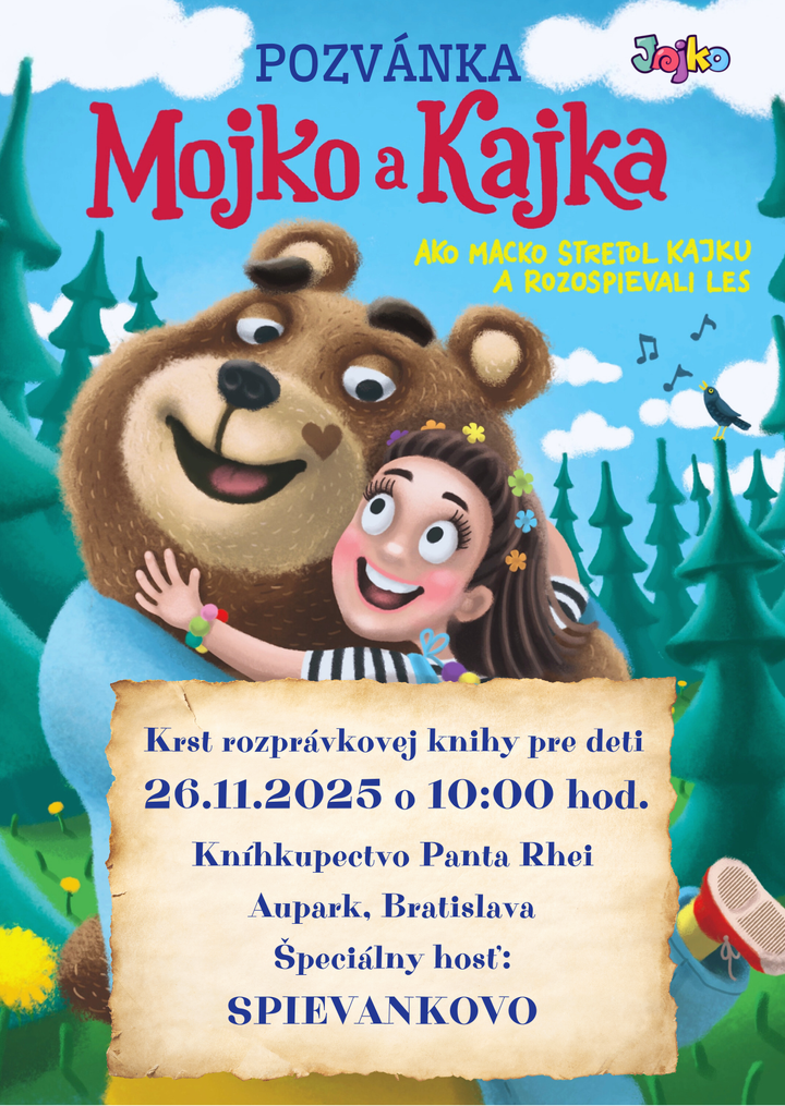 Marketingová manažérka TV Jojko Kristína Tráčová srdečne pozýva všetkých malých aj veľkých čitateľov na krst knihy Mojko a Kajka: